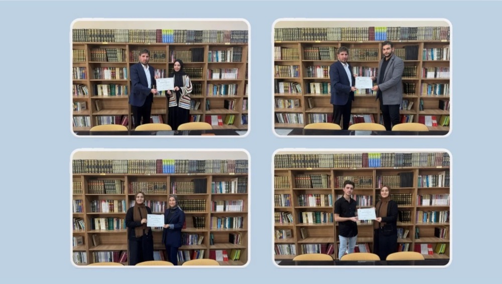 Fakültemiz tarafından gerçekleştirilen 'Vefatının 22. Yılında Aliye İzzetbegoviç' adlı öğrenci panelinde sunucu ve panelist olan öğrencilerimize fakültemiz dekanı Prof. Dr. M. Murat Karakaya ve Arş. Gör. Dr. Rukiye Çelebi hocalarımız tarafından teşekkür belgesi takdim edildi.