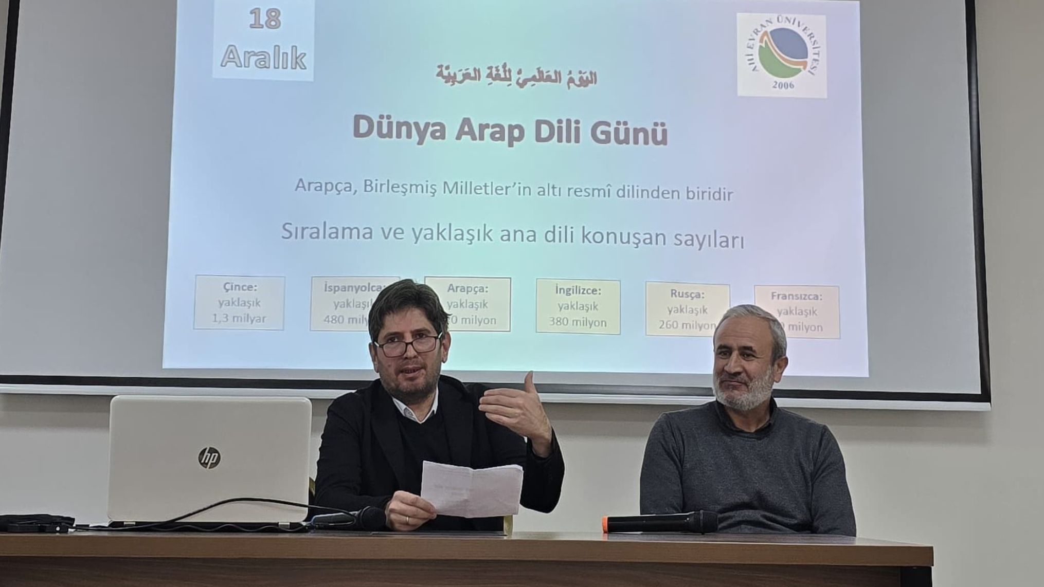 Fakültemizde, Dr. Öğr. Üyesi Mohammad Bonja ve hazırlık sınıfı öğrencilerinin hazırladığı etkinliklerle "Dünya Arap Dili Günü" coşkuyla kutlandı. Emeği geçen tüm öğrencilerimize teşekkür ederiz.