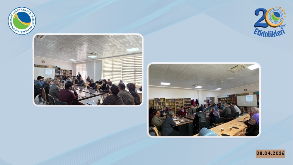 Fakültemiz Seminerler Serisi kapsamında Doç. Dr. Sıddık Baysal, Dr. Öğr. Üyesi Osman Zahit Şener ve Arş. Gör. Dr. Rukiye Çelebi hocalarımız ile Doç. Dr. Sıddık Baysal'ın "Biri, Diğeri ve Hiçbiri Anlamın Neliği Üzerine Varoluşsal Bir Deneme" isimli kitabı tahlil edildi. Fakülte kütüphanesinde gerçekleşen programa fakültemiz hocaları ve öğrencilerimiz katılım sağladı.