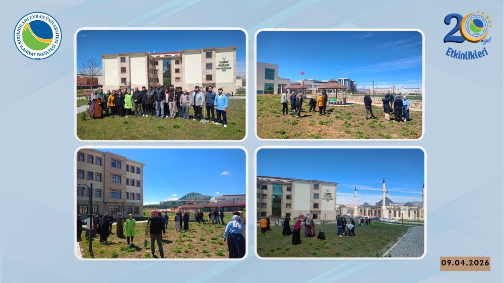 Üniversitemiz 20. Kuruluş Yıldönümü kapsamında çevre güzelleştirilmesi için Fakültemiz bahçelerini ağaçlandırmaya yönelik faaliyet gerçekleştirildi. Dekanımız, idari personel ve öğrencilerimiz iş birliği ile Fakültemizin ön ve arka bahçesinde doğaya sahip çıkmak vurgusu ile fidanlar dikildi.