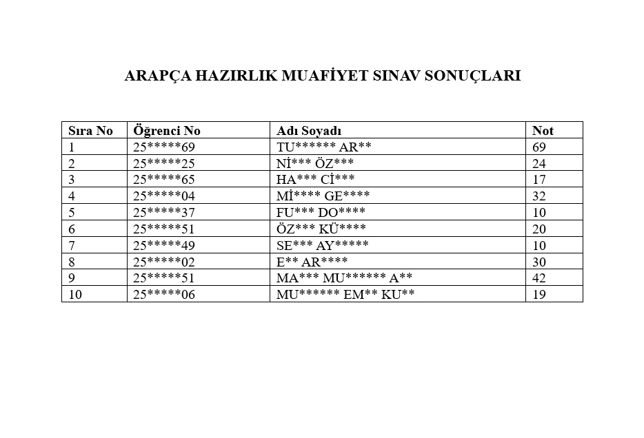 Arapça Hazırlık Muafiyet Sınav Sonuçları